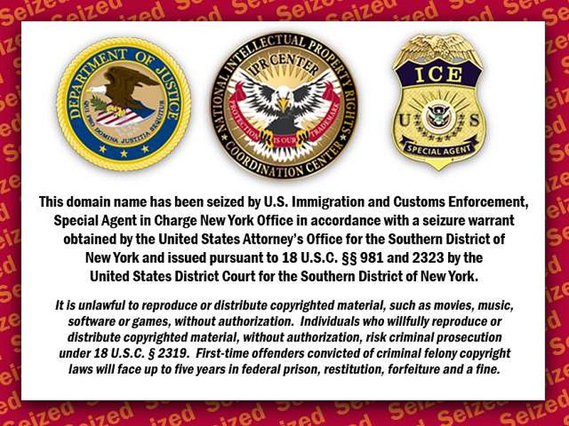 Immigration and Customs Enforcement (ICE) Site seized Notice